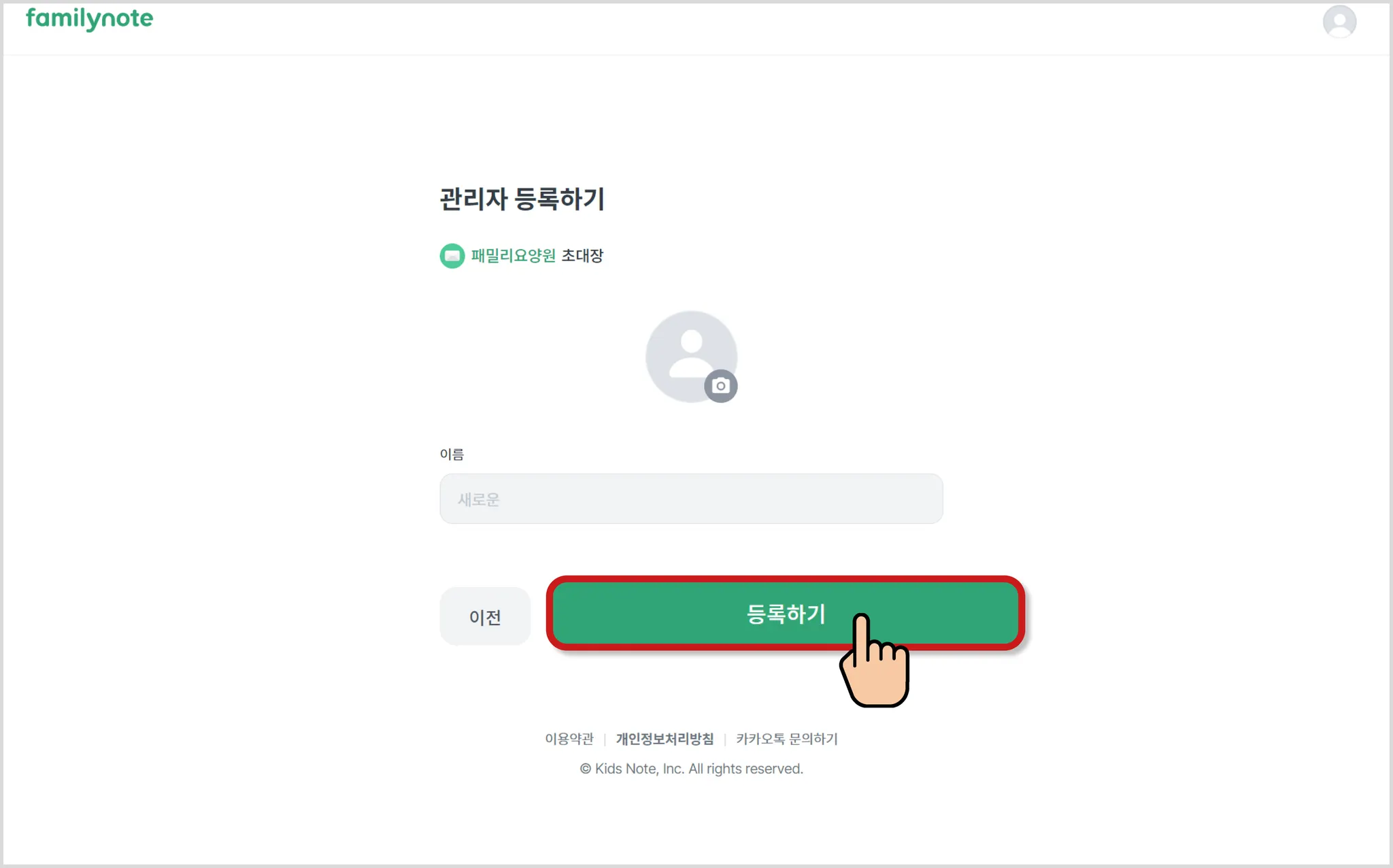 패밀리노트의 대표 관리자는 한 분만 등록이 가능합니다.