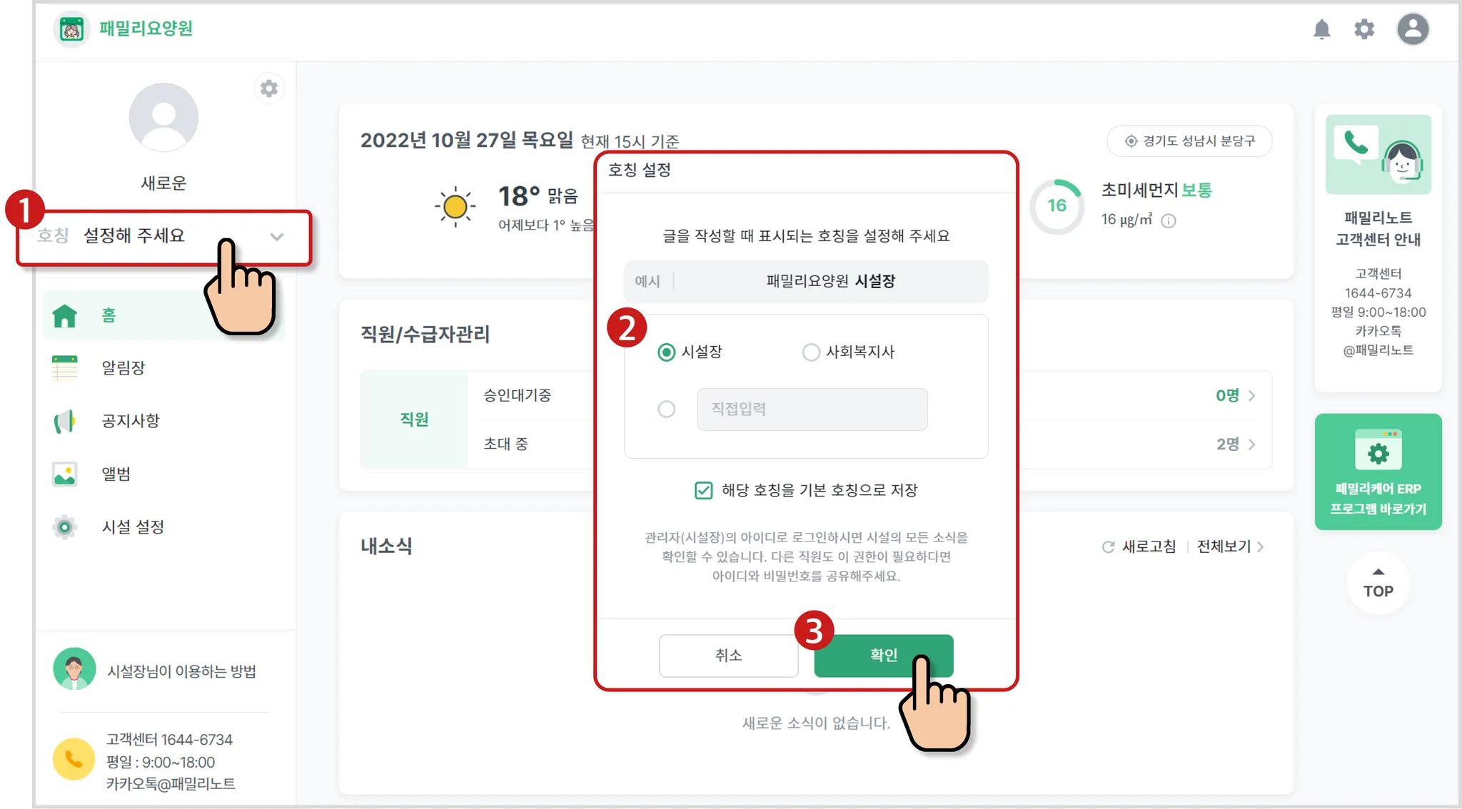 우리 시설의 대표 관리자님이 새롭게 변경 되었어요!