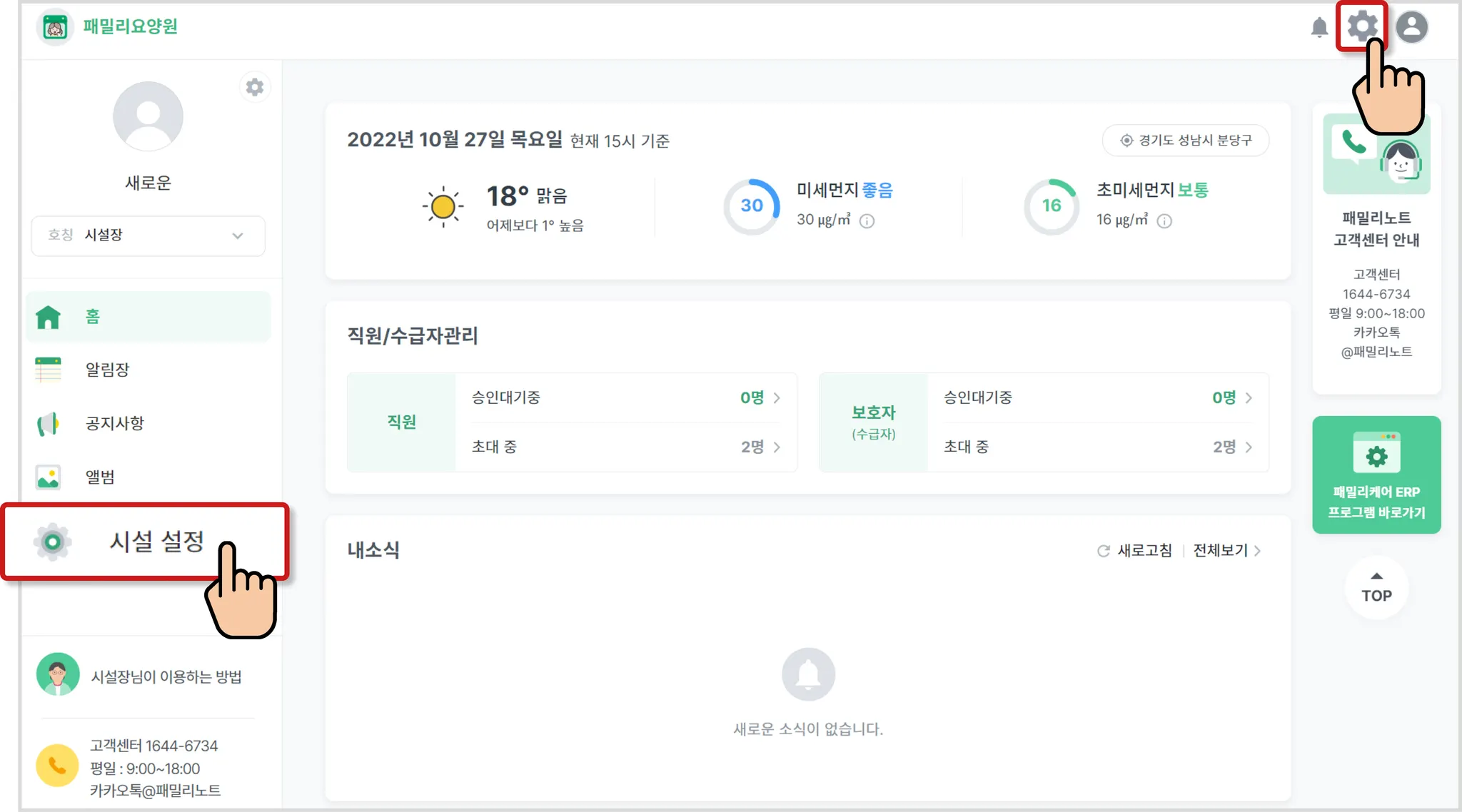 시설장님이 변경될 경우 새로운 신규 시설장님으로 변경하는 방법을 안내해드릴게요.