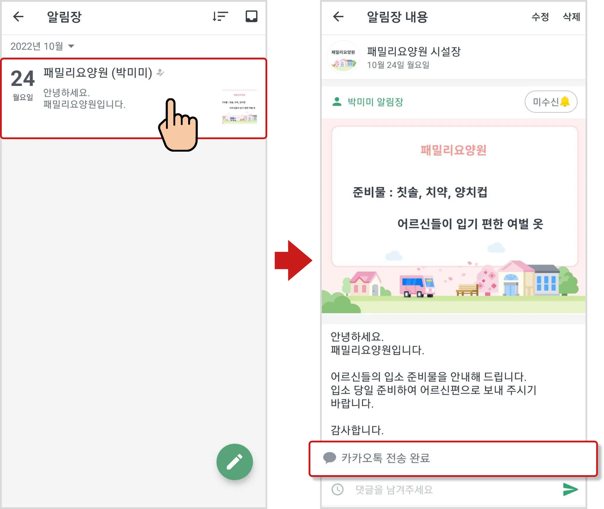 알림장 카카오톡 전송의 장점!
