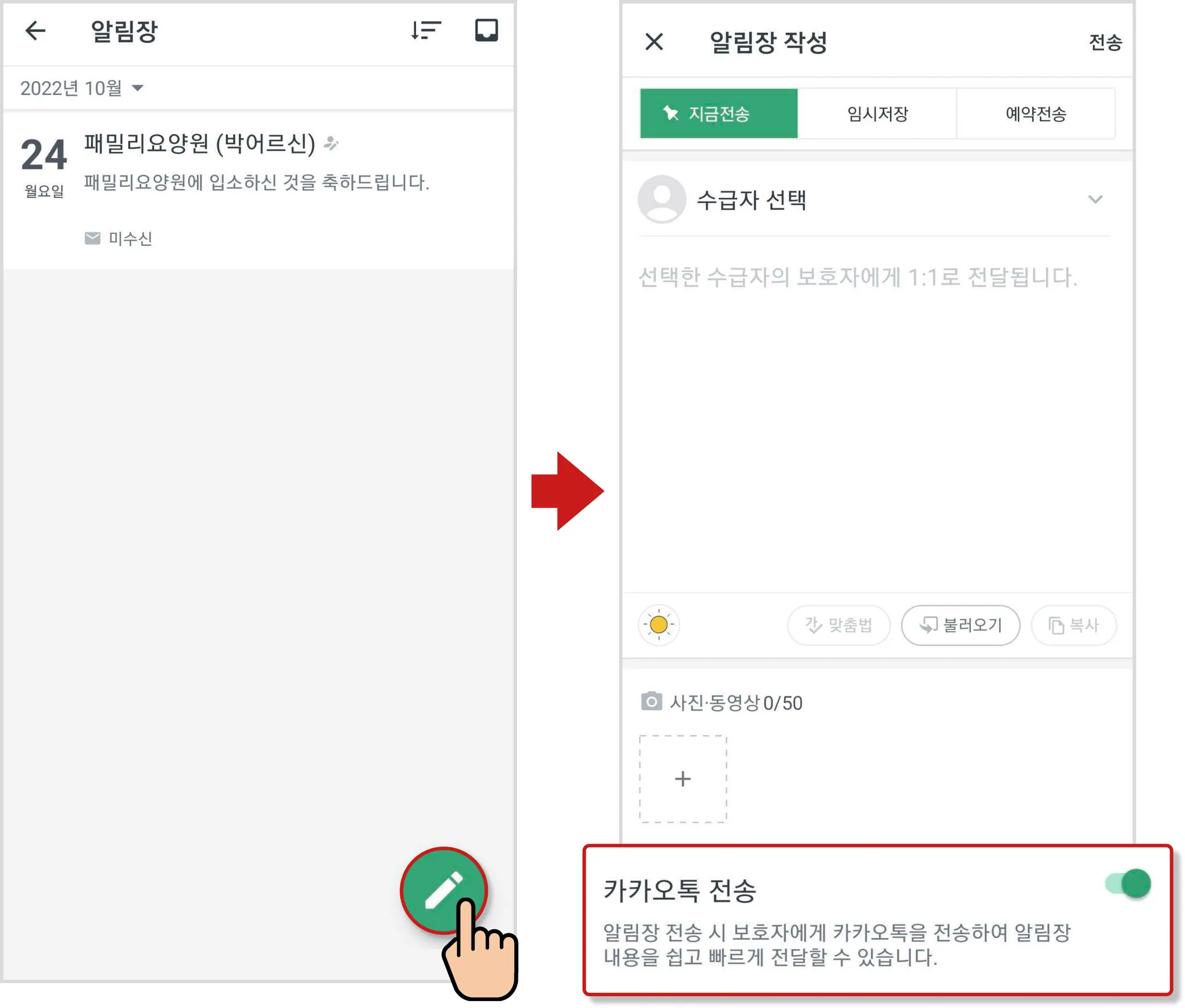 패밀리노트의 편리한 알림장 카카오톡 전송 기능에 대해 안내해 드릴게요!