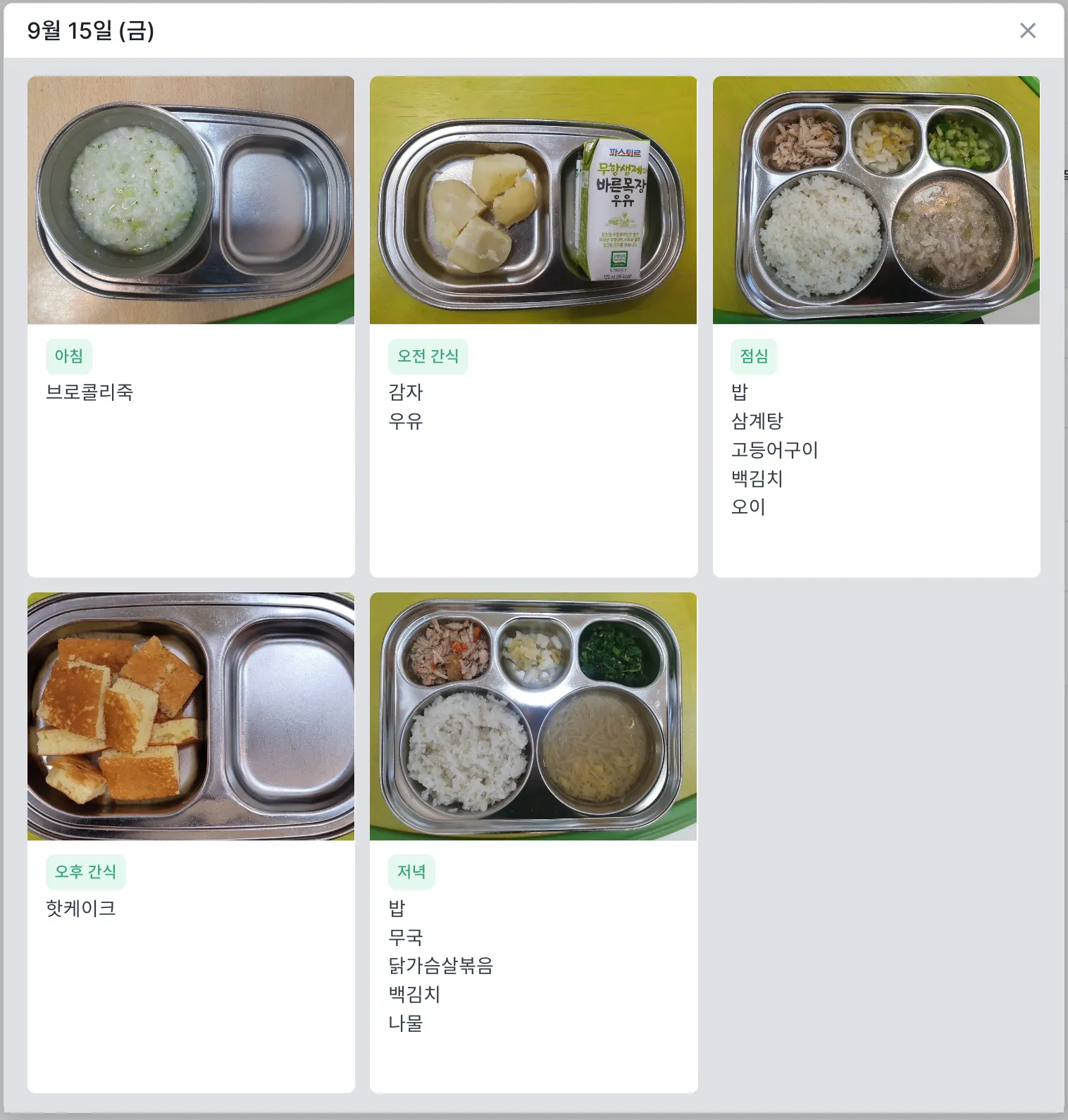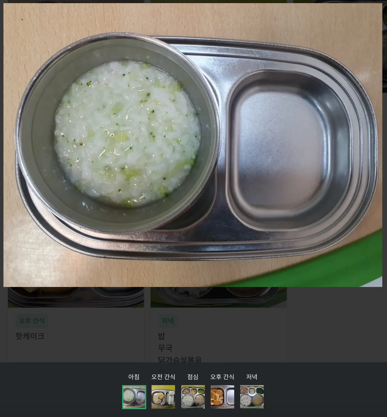 팝업에 나타난 사진을 클릭하면, 제공된 식단 사진을 확대하여 볼 수 있습니다.