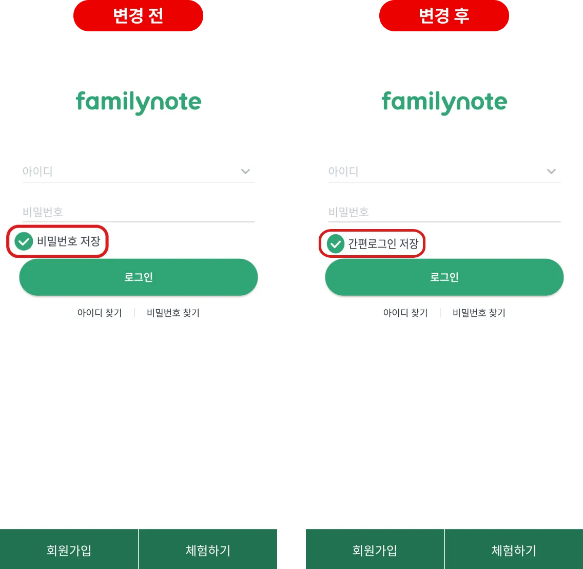 개인정보보호 강화에 따라 패밀리노트 로그인 방식이 변경됩니다.