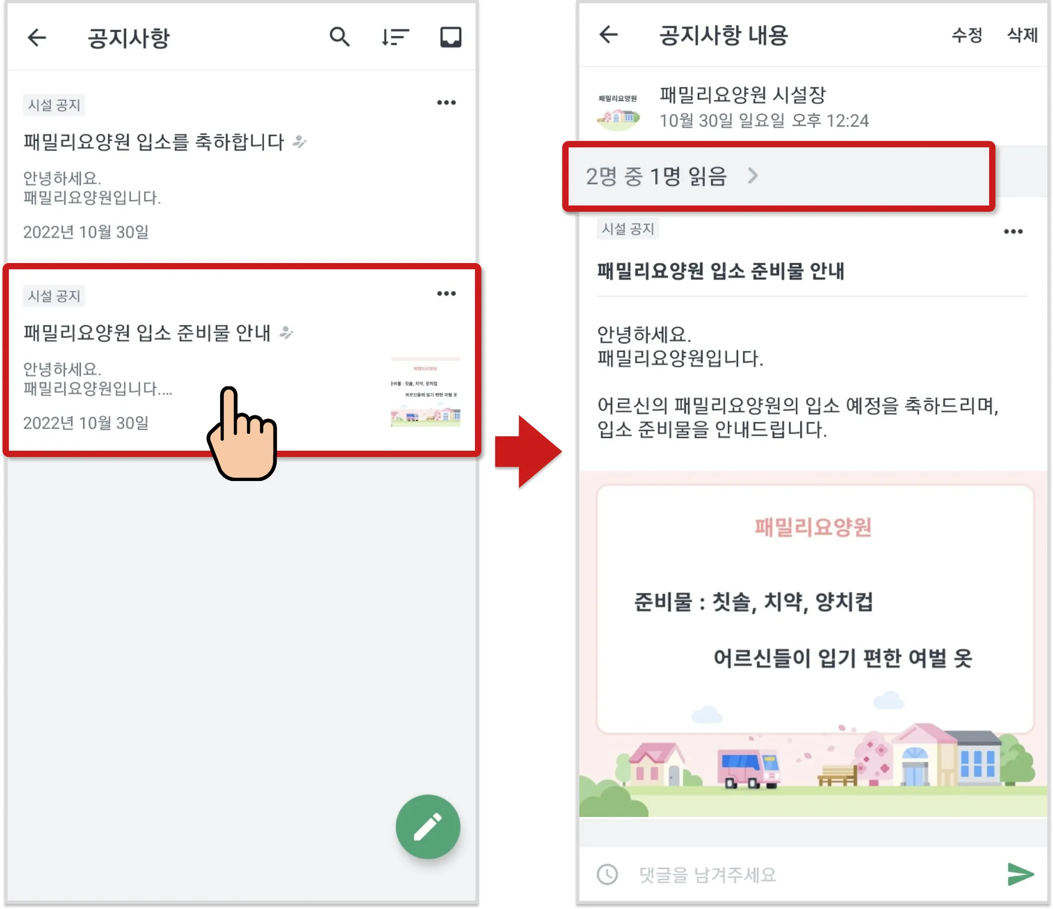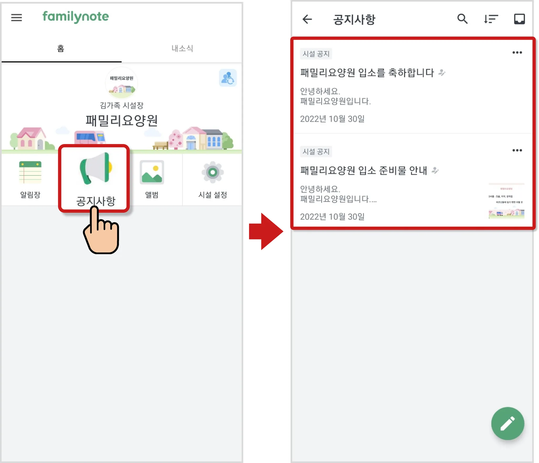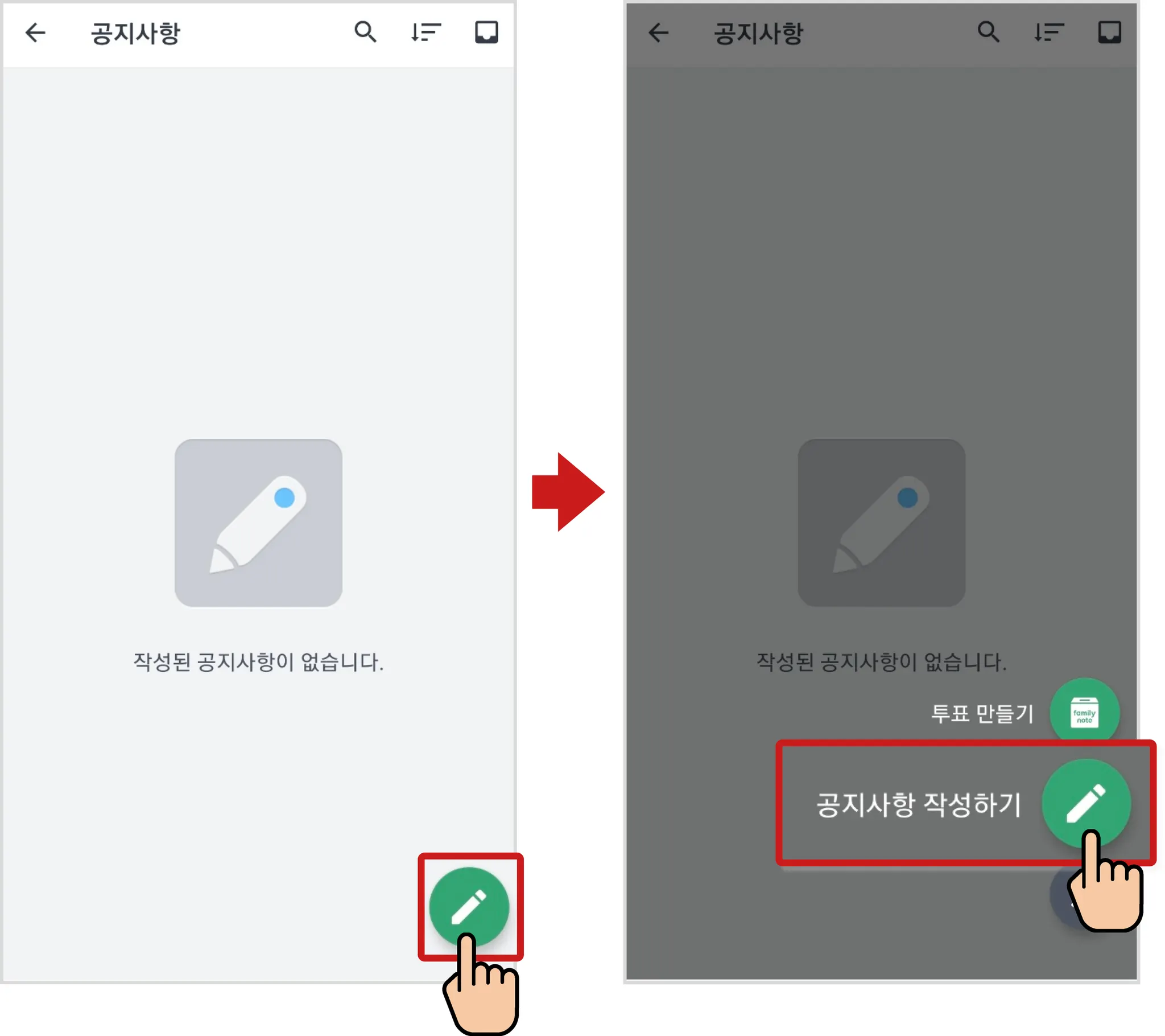 지금부터 패밀리노트 공지사항 활용방법을 안내해드릴게요.