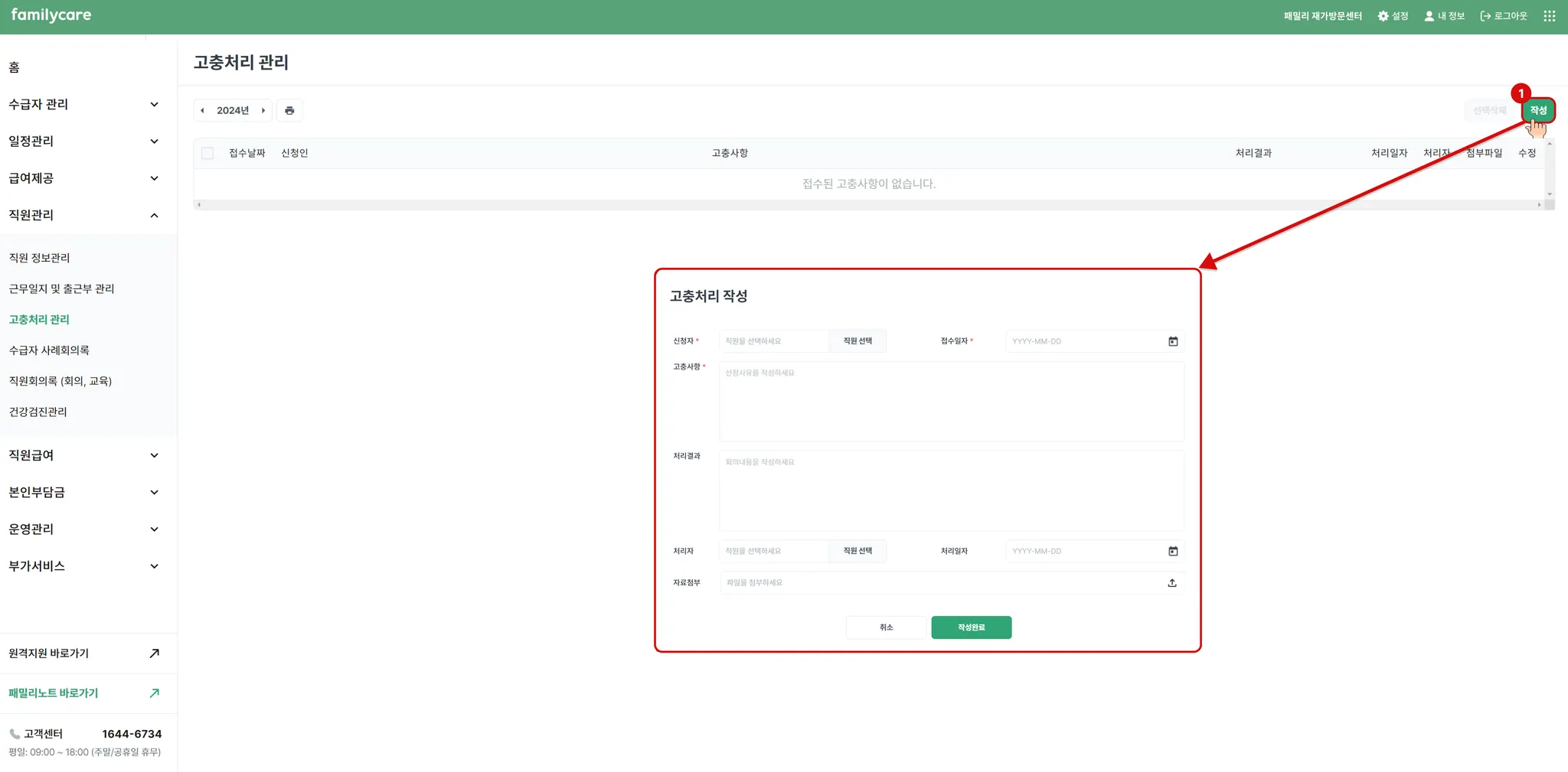 1) 고충처리 관리 작성하기