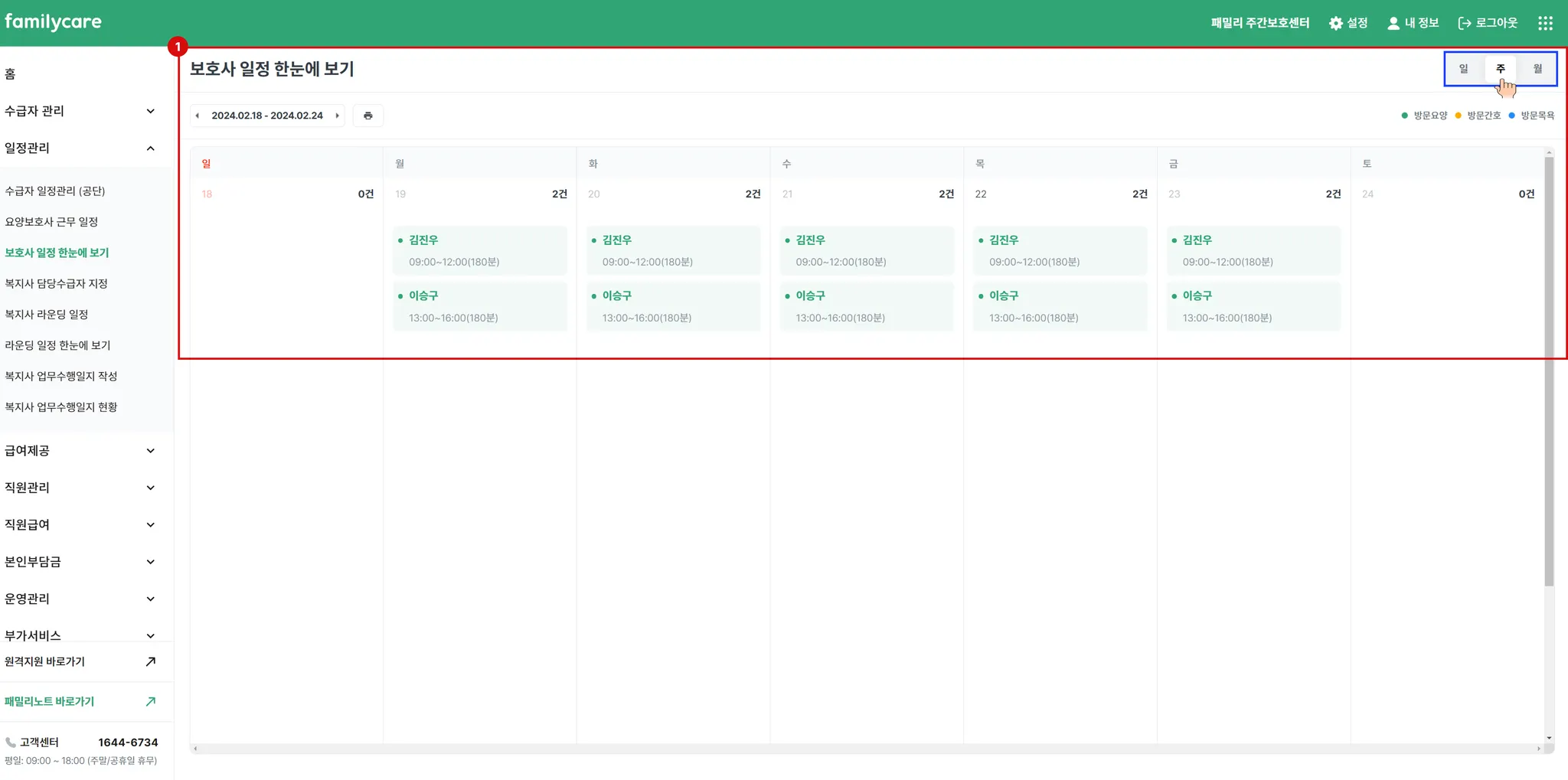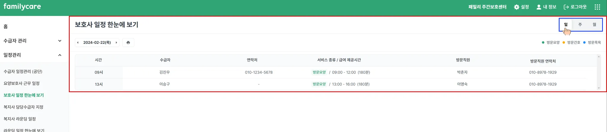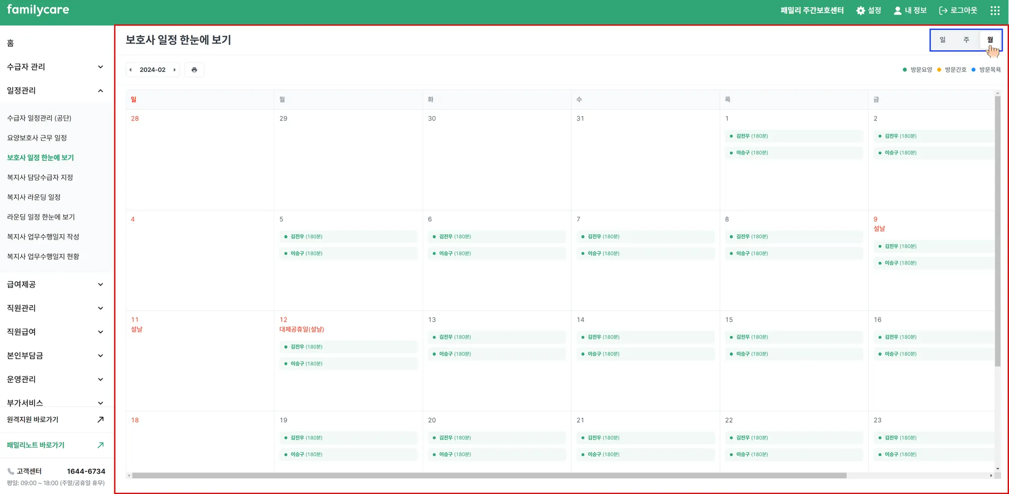 보호사 일정 한눈에 보기