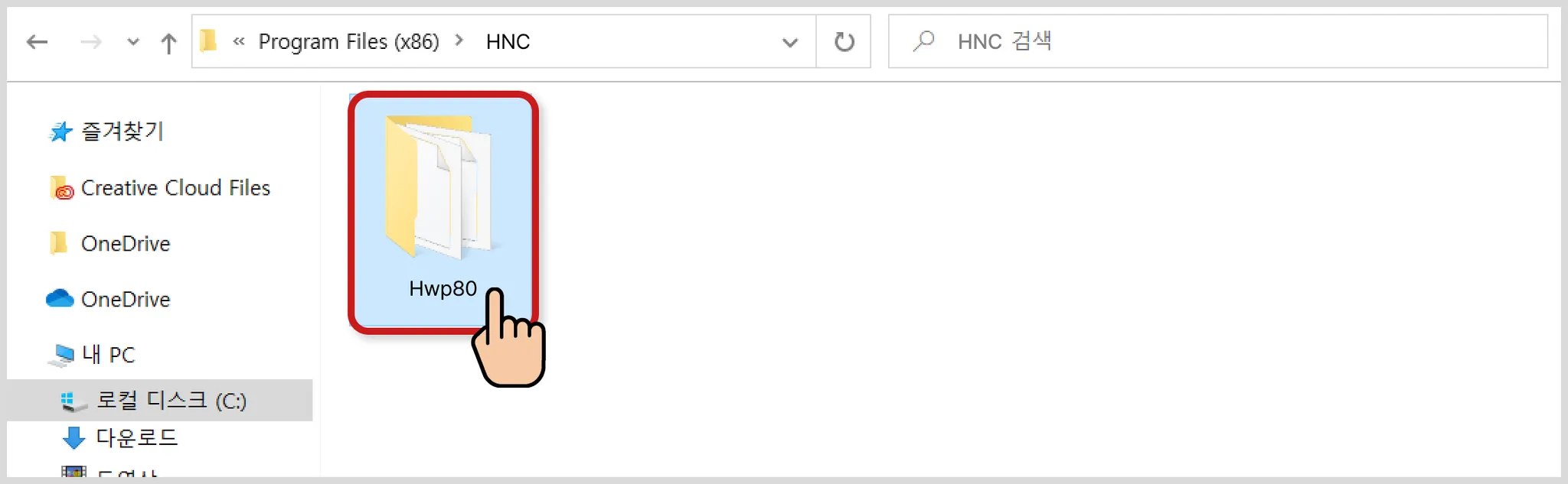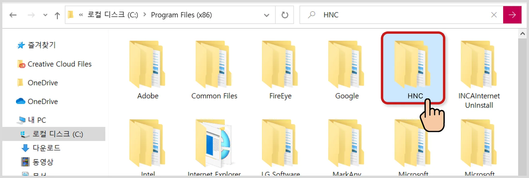 폴더 안에 HNC라는 한글 프로그램 관련 폴더를 클릭합니다