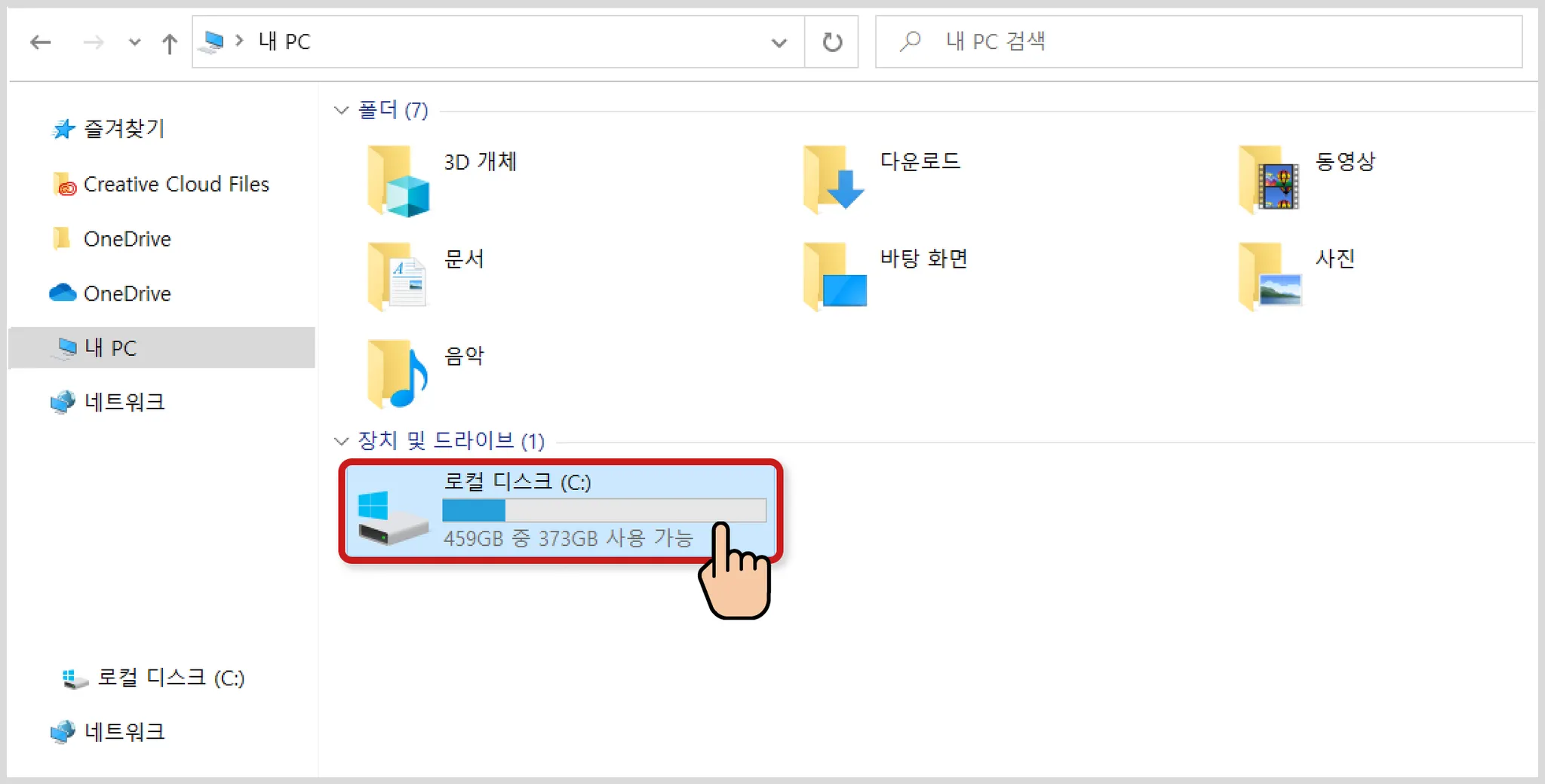 사용 중인 PC의 내 컴퓨터에서 C 드라이브를 클릭합니다.