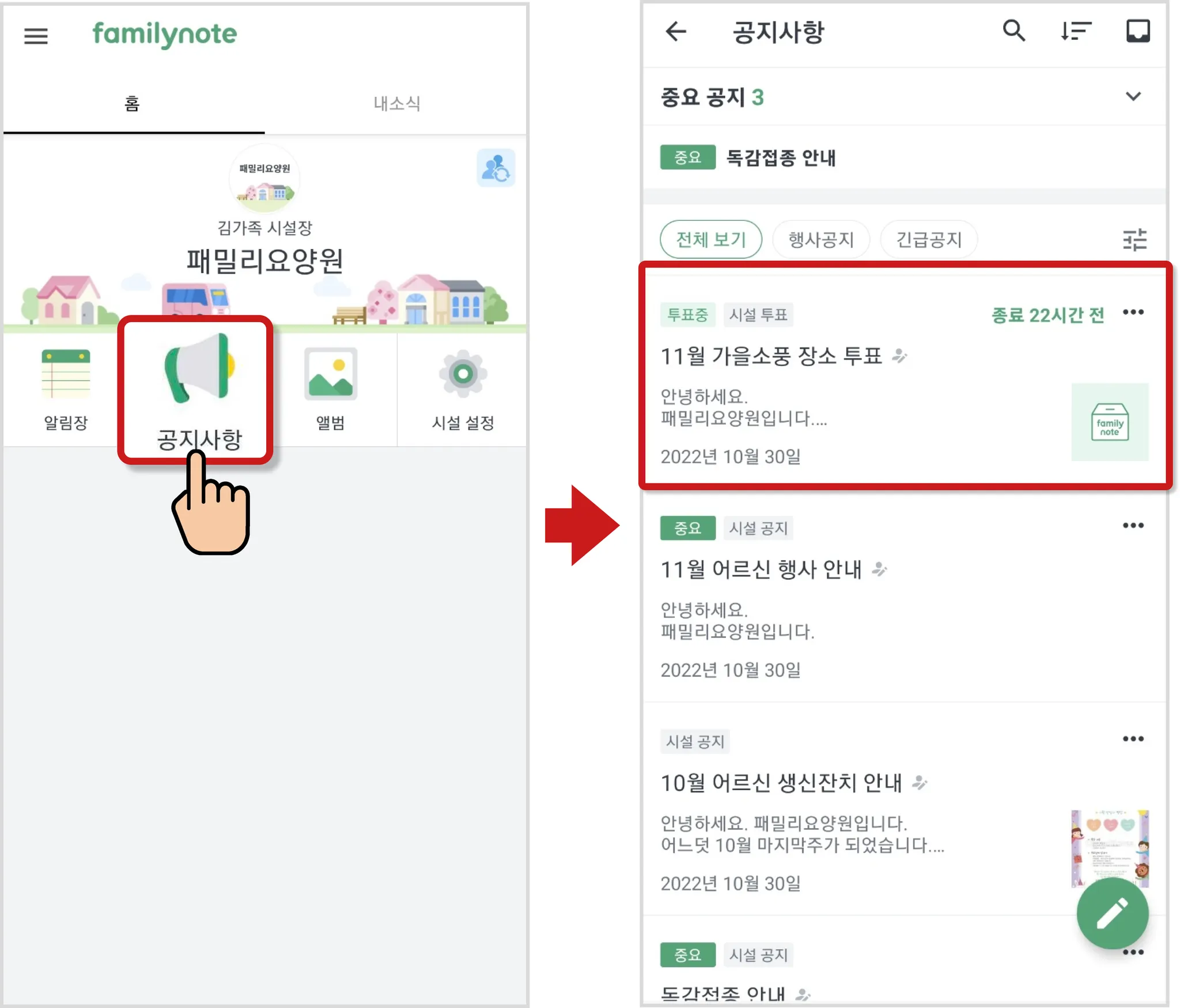 지금부터 패밀리노트 투표 활용방법을 안내해드릴게요.