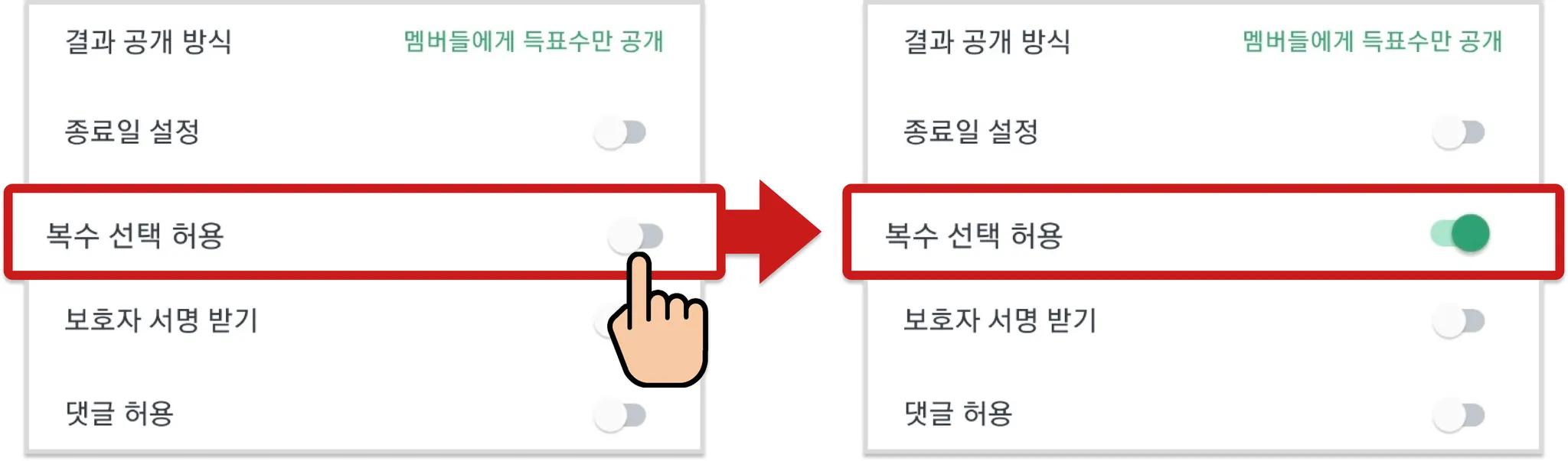 -복수 선택 허용: 투표시, 항목을 복수로 선택할 수 있어요.