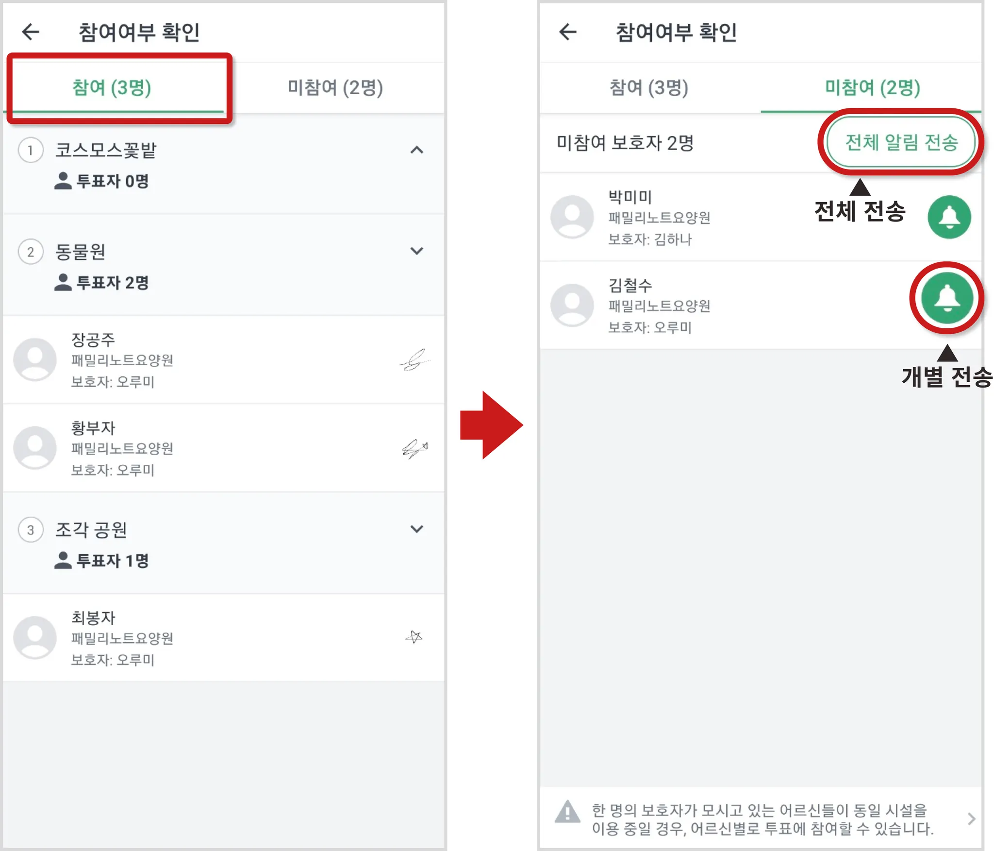 -미참여자는 투표에 참여하지 않은 보호자 명단입니다.