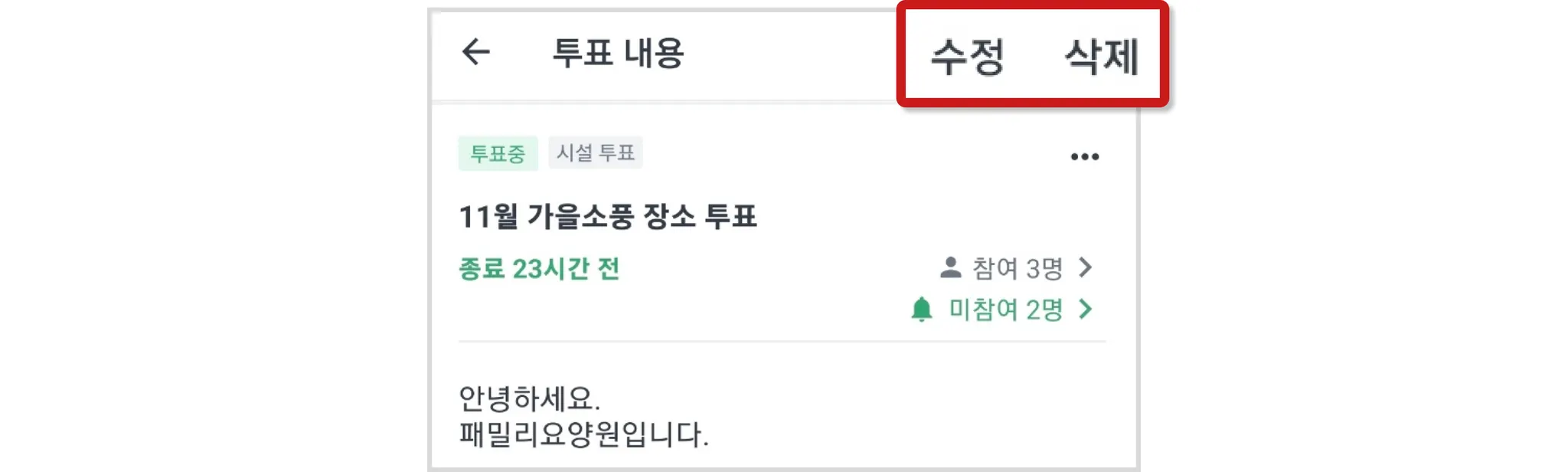 -투표 종료시 멤버들에게 투표 종료 알림이 발송되며, 수정할 수 없습니다.